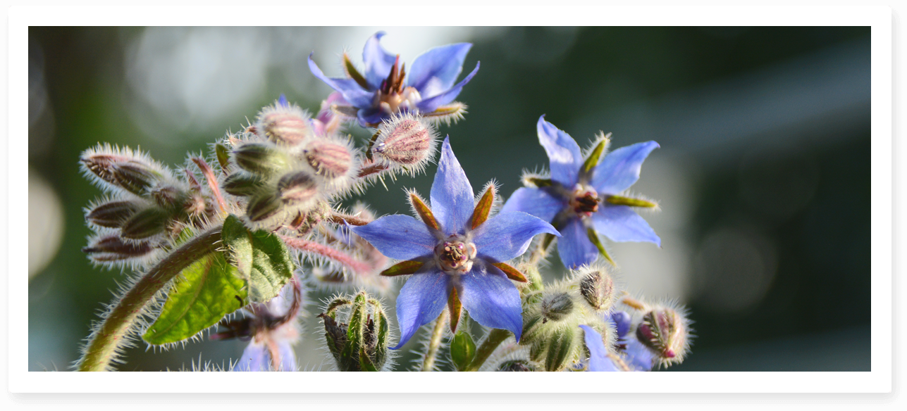 Die blauen Blüten der Pflanze sind reich an Nektar und Pollen und so zählt Borretsch zu den Bienenweiden.