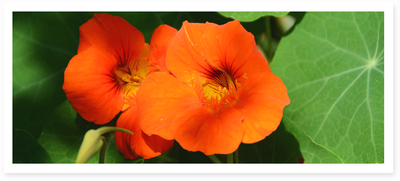Die kräftige Farbe der Kapuzinerkresseblüten ziehen unsere Aufmerksamkeit an. Wegen der Ähnlichkeit zu Kapuzen der Mönchskutten wird die Pflanze deshalb Kapuziner­kresse genannt. Der Name Tropaeolum stammt aus dem Griechischen und bedeutet Siegeszeichen, weil die Blätter der Pflanze an Kampfschilder erinnern. Die Kapuzinerkresse besitzt eine beachtliche Menge an Wirkstoffen wie z.B. Senfglykoside, ätherisches Kresseöl und Vitamin C. Diese Inhaltstoffe wirken blutreinigend, entzündungs-, bakterien- und virenhemmend.